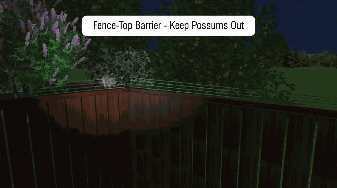 The fence barrier is designed for existing fences 1.5m or higher. Once installed, it sits a maximum of 18cm above your existing fence. The barrier stops cats and possums going over the fence or possums travelling along the fence.